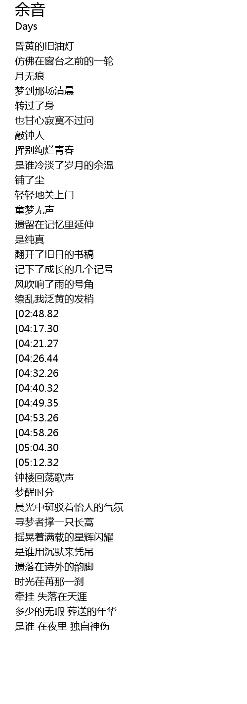 | [01:54.32][04:26.44] | 余音裊裊 |