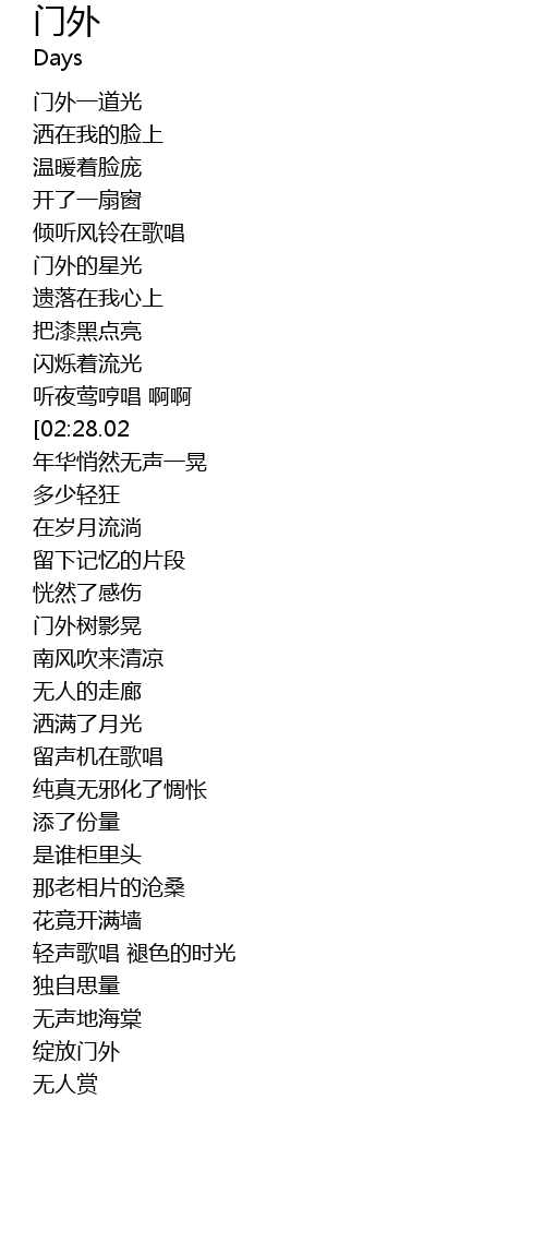 | [02:01.53] | mén wài shù yǐng huǎng |