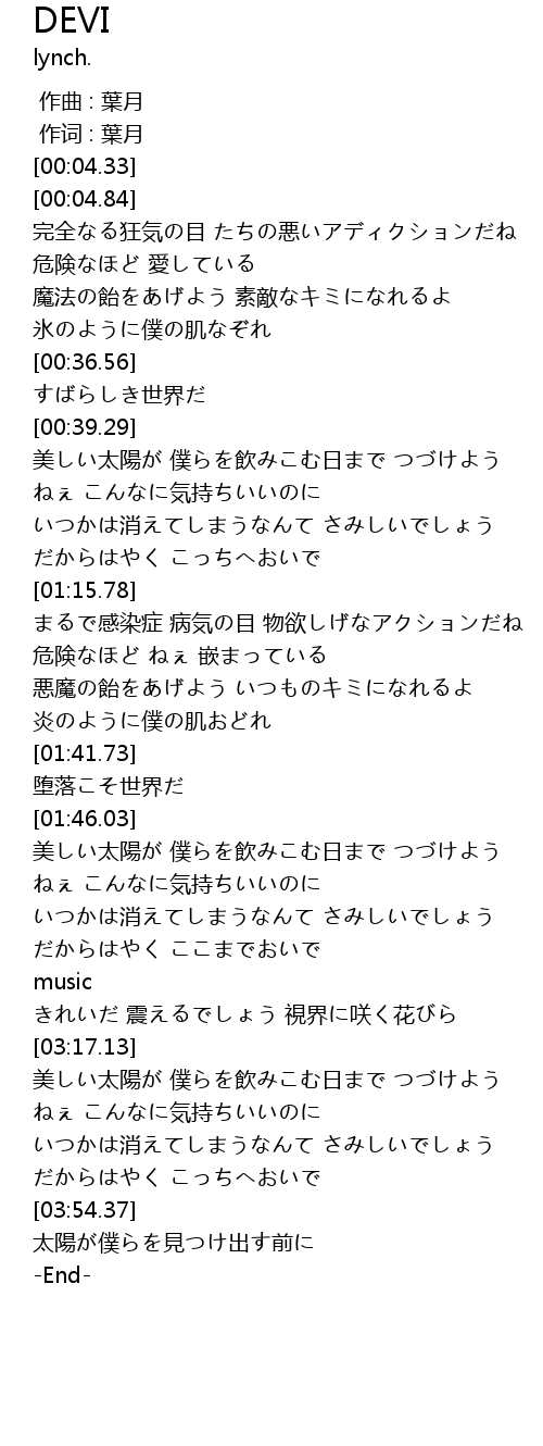 | [01:33.27] | 悪魔の飴をあげよう いつものキミになれるよ |