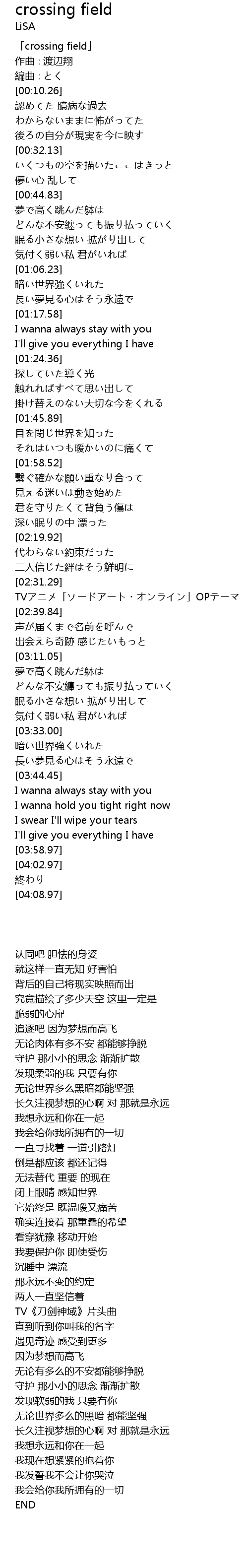 | [00:00.26] | 「crossing field」 |