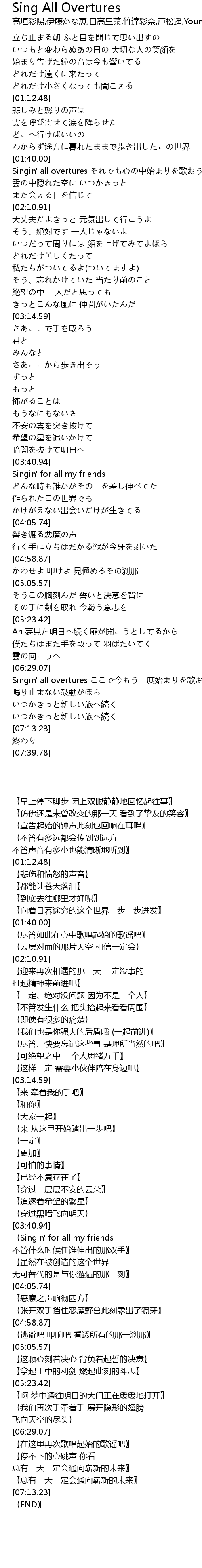 | [01:43.84] | Singin' all overtures それでも心の中始まりを歌おうよ |
