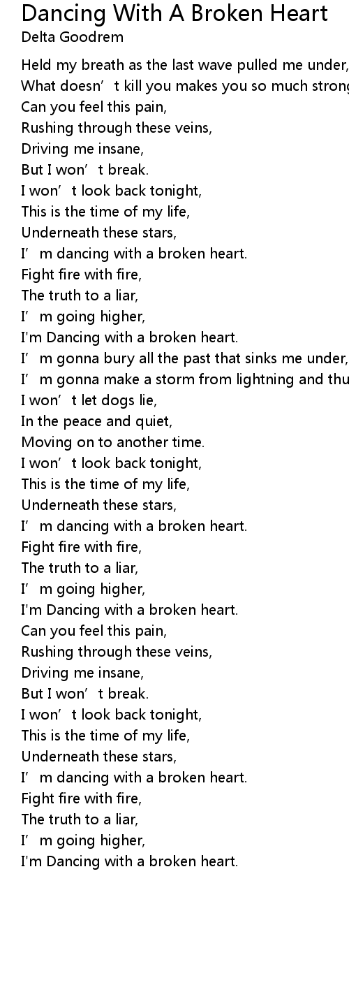 | I’m dancing with a broken heart. | |