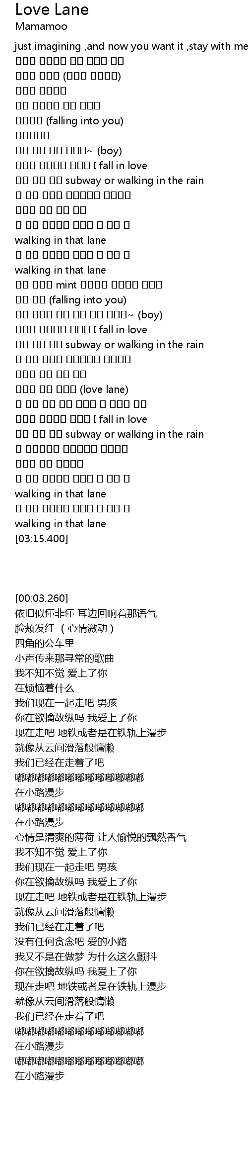 | [02:15.490] | 아무런 욕심 없었죠 (love lane) |