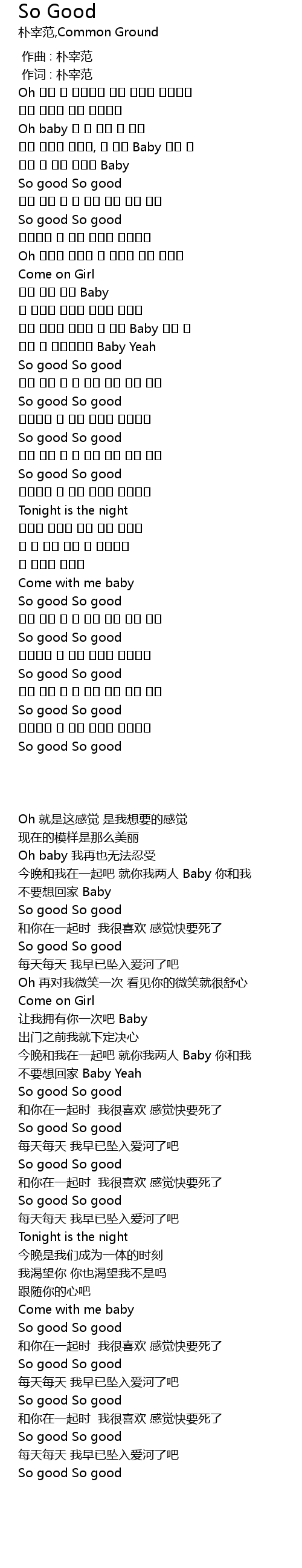 | [00:01.00] | 作词 : 朴宰范 |