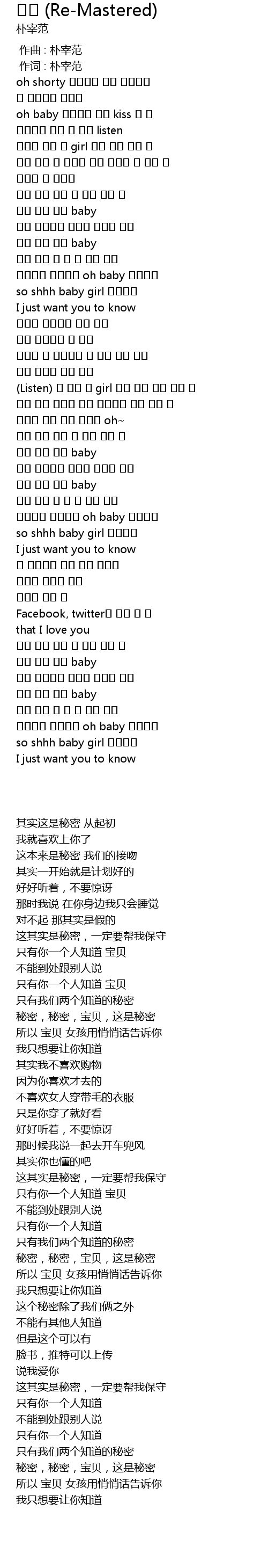| [02:11.440] | 비밀이야 비밀이야 oh baby 비밀이야 |