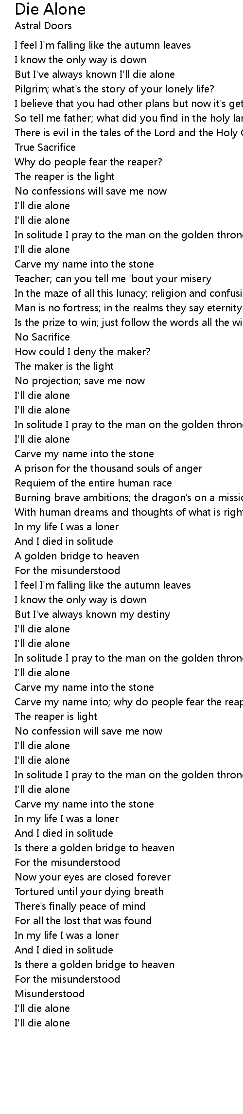 But I've always known I'll die alone |