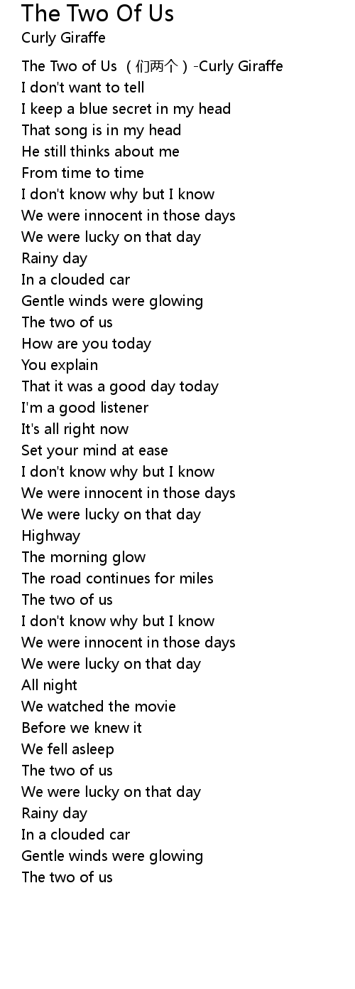 | [00:00.00] | The Two of Us men liǎng gè Curly Giraffe |