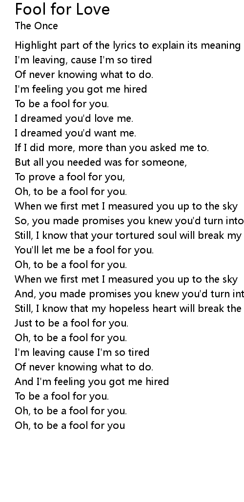 Oh, to be a fool for you |