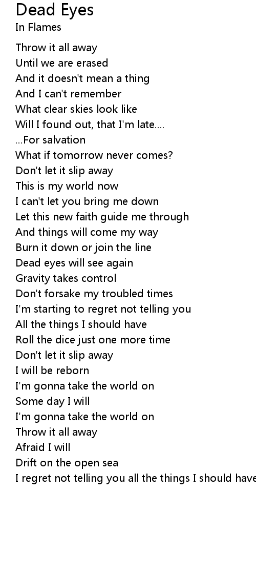 Dead eyes will see again |