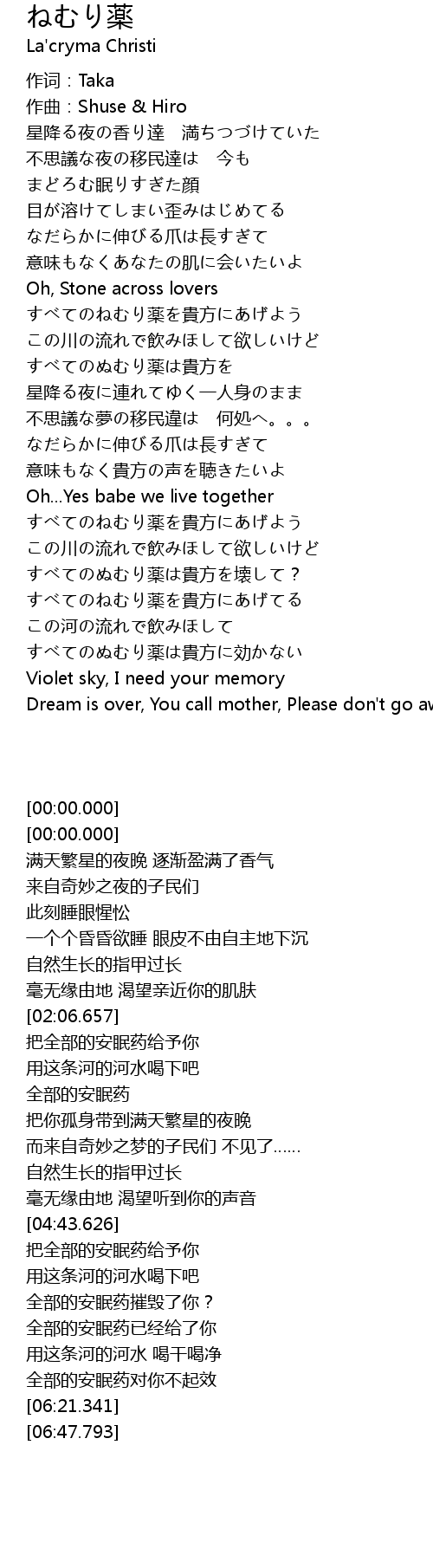 | [04:59.989] | すべてのねむり薬を貴方にあげよう |