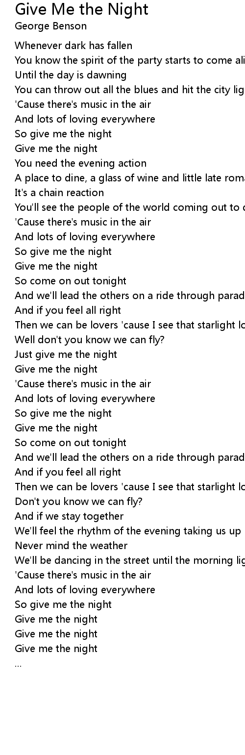 So give me the night |