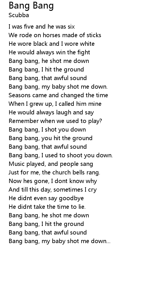 Bang bang, my baby shot me down. |