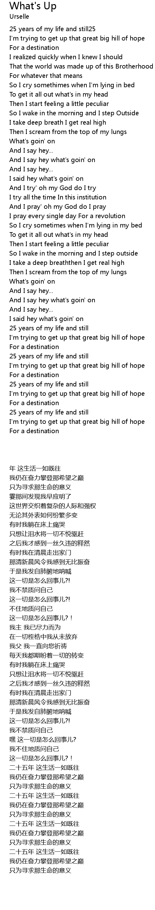 And I say hey what's goin' on |