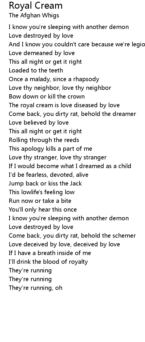 The royal cream is love diseased by love |