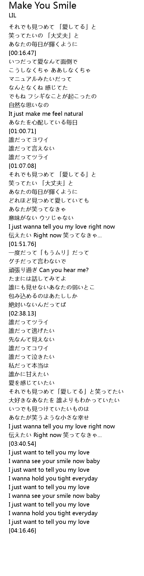 | [04:01.25] | I wanna see your smile now baby |