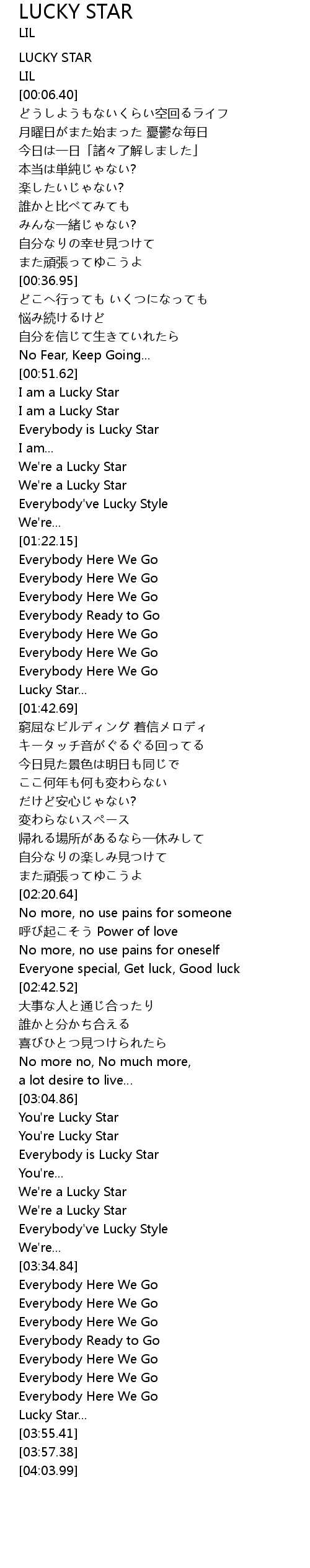 | [02:38.77] | Everyone special, Get luck, Good luck |