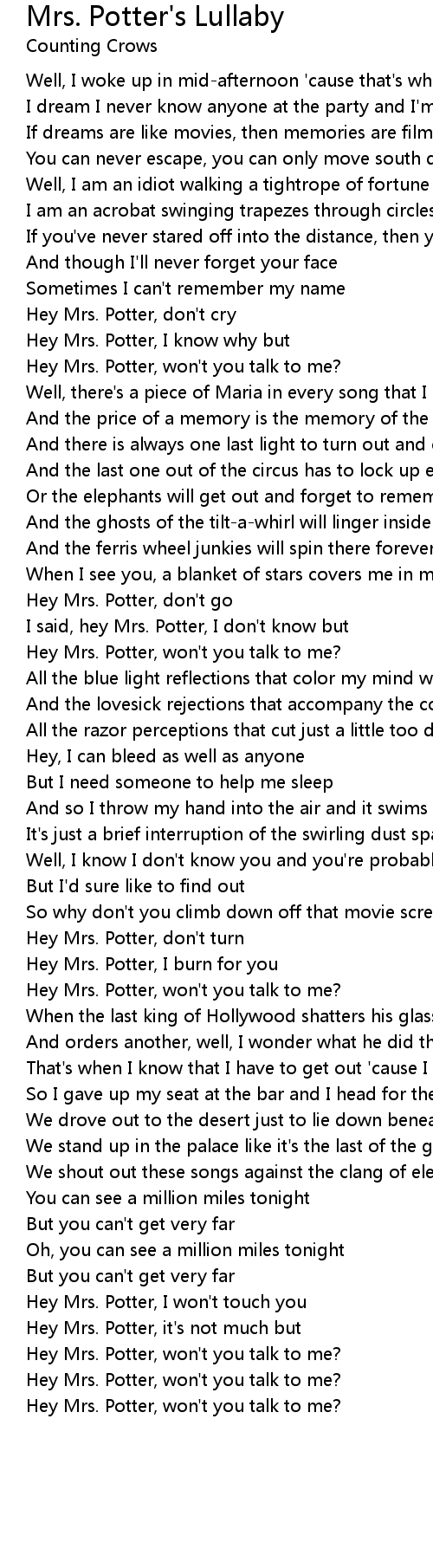 Hey Mrs. Potter, don't cry |