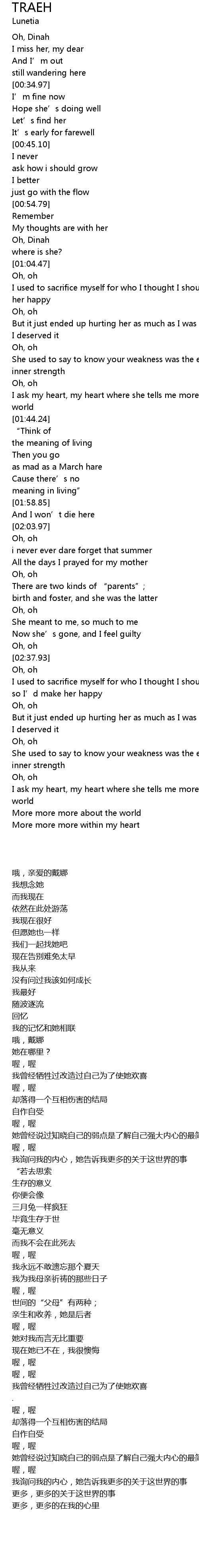 | [01:39.48] | I ask my heart, my heart where she tells me more, more about this world |