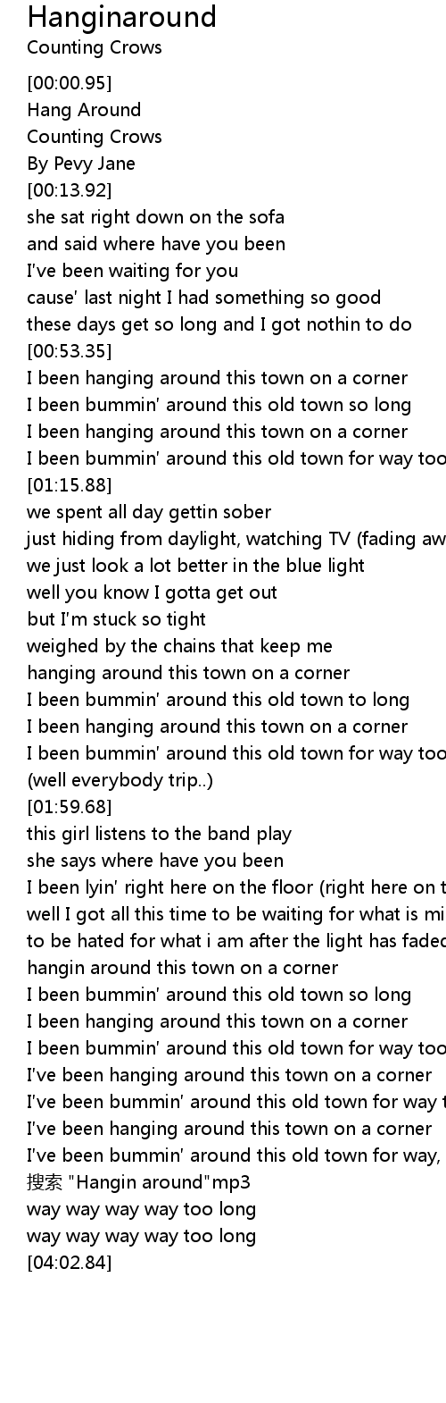 | [03:16.04] | I ve been bummin around this old town for way, way, way too long sou suo " Hangin around" mp3 |