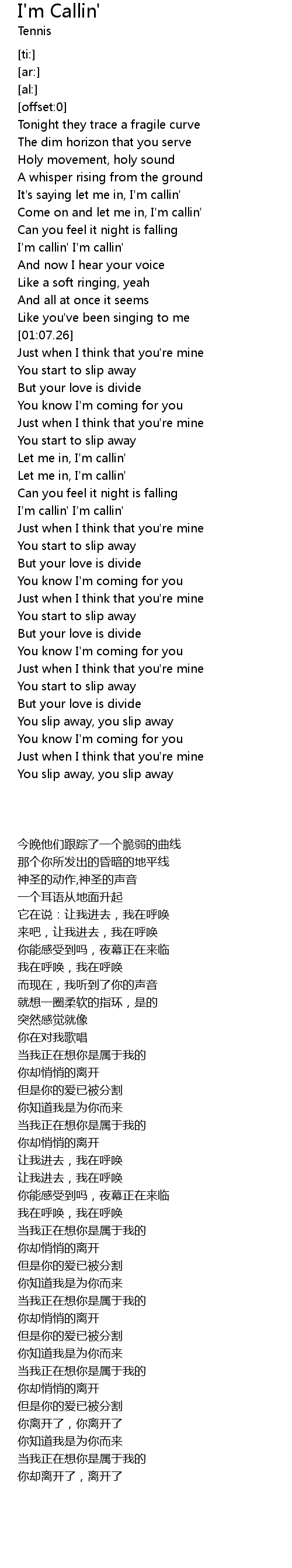 I'm callin' I'm callin' |