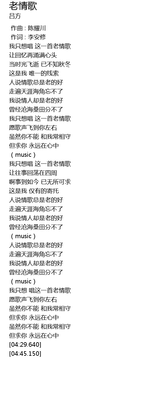 | [00:35.750] | 我只想唱 这一首老情歌 |