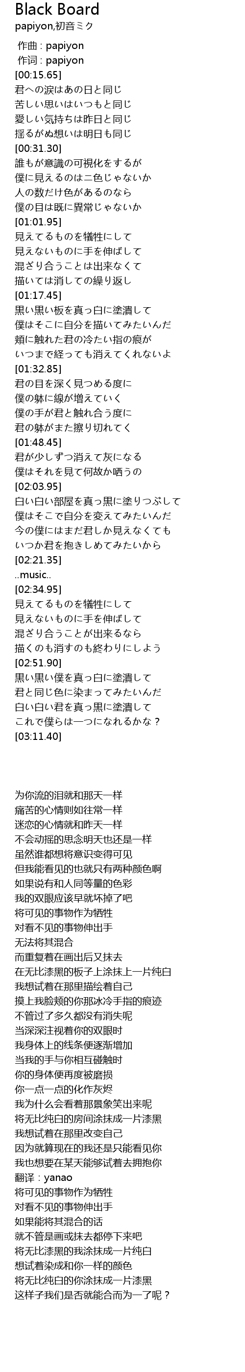 | [01:17.70] | 黒い黒い板を真っ白に塗潰して |