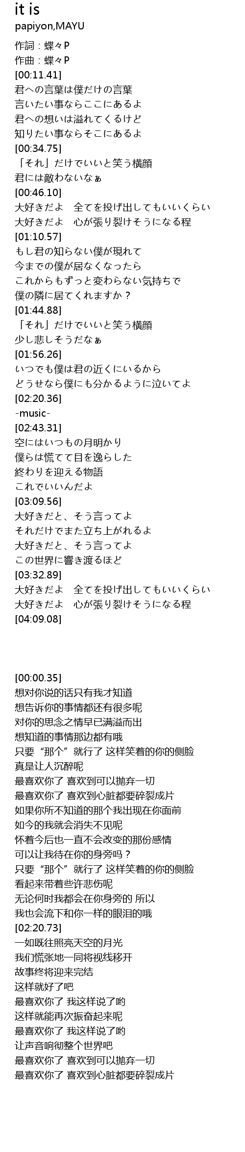 | [03:44.96] | 大好きだよ 心が張り裂けそうになる程 |