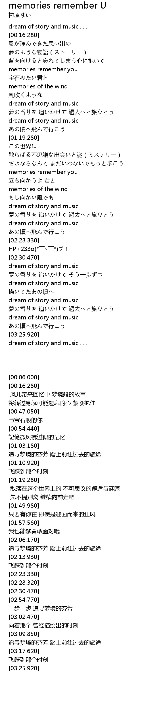 | [00:31.610] | 風が運んできた思い出の 夢のような物語(ストーリー) |