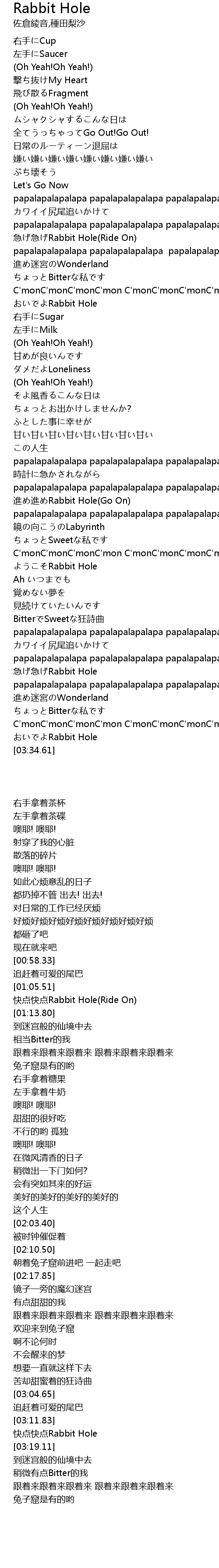 | [03:15.51] | 急げ急げRabbit Hole |