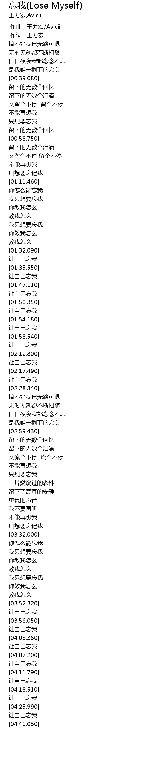 | [00:00.00] | zuò qǔ : wáng lì hóng Avicii |