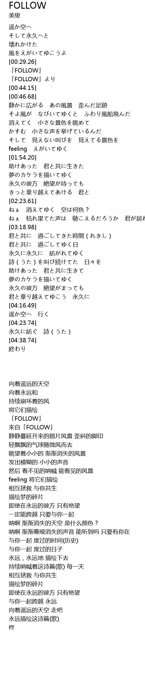 | [00:58.35] | 静かに広がる あの風景 歪んだ足跡 |