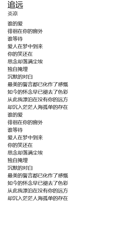 | [01:22.847] | 从此我漂泊在没有你的远方 |