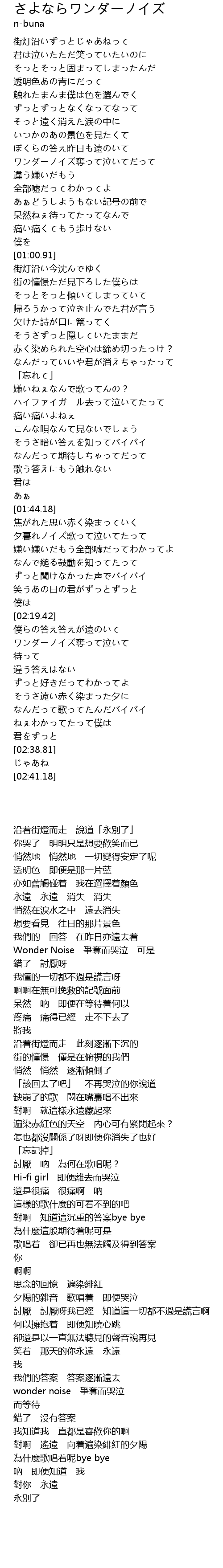 | [02:23.23] | ワンダーノイズ奪って泣いて |