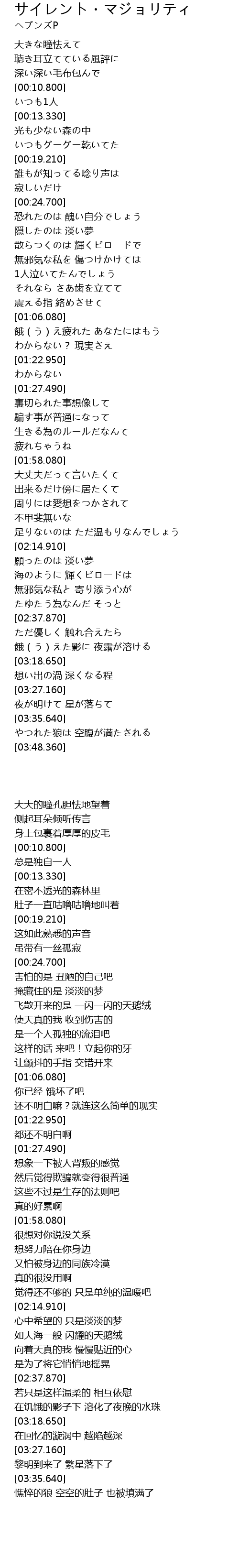| [03:36.200] | やつれた狼は 空腹が満たされる |