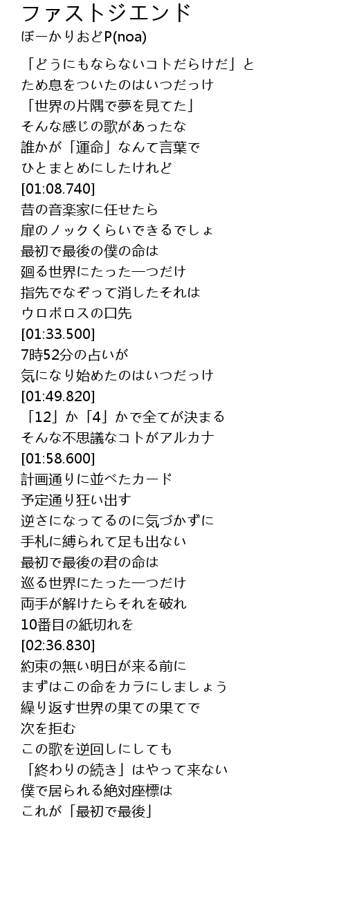 | [03:06.940] | 繰り返す世界の果ての果てで |