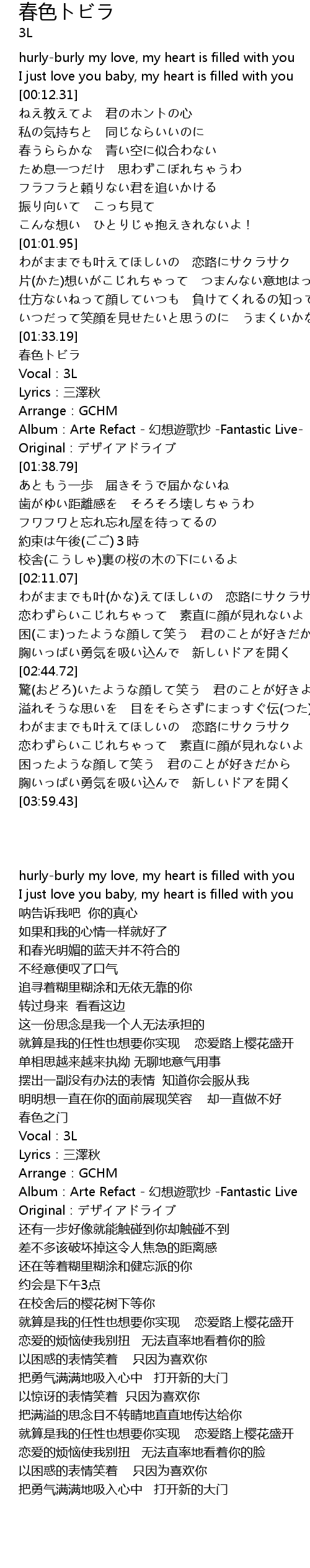 | [01:33.99] | 春色トビラ |