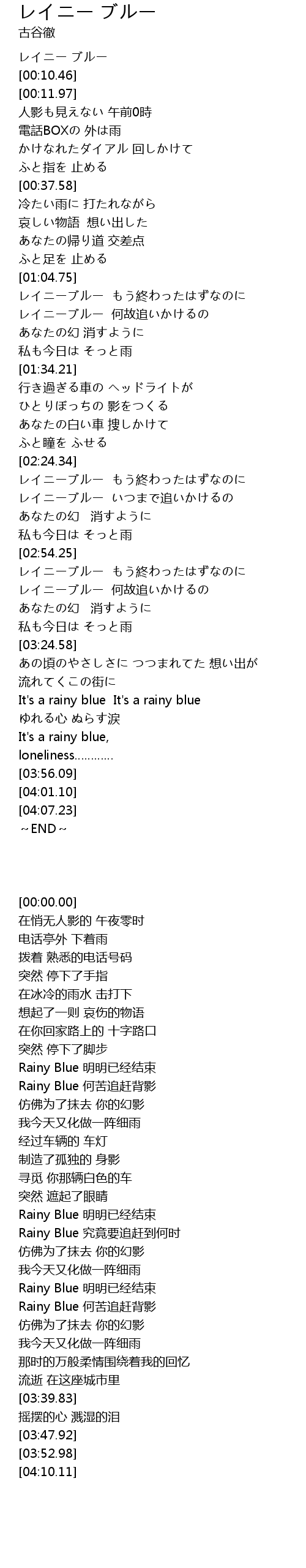 | [02:36.82] | レイニーブルー いつまで追いかけるの |