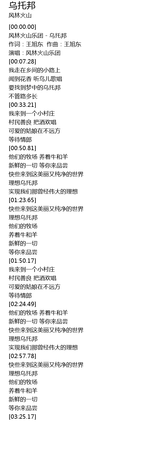| [00:02.21] | 风林火山乐团 - 乌托邦 |