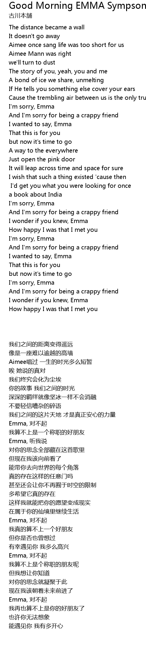 And I'm sorry for being a crappy friend |