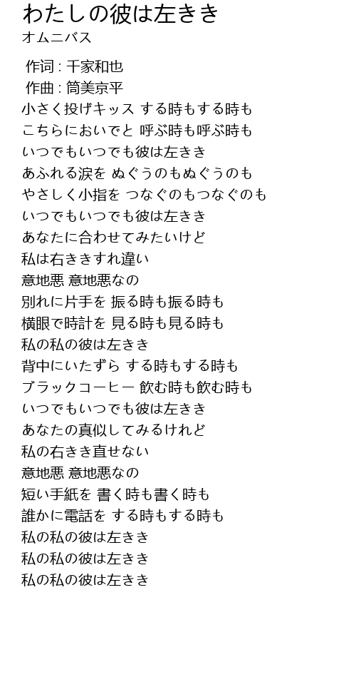| Song | わたしの彼は左きき |
