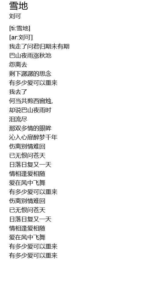 | [01:31.549] | yǒu duō shǎo ài kě yǐ chóng lái |