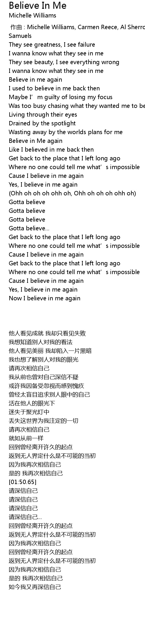 | [01:33.36] | Cause I believe in me again |