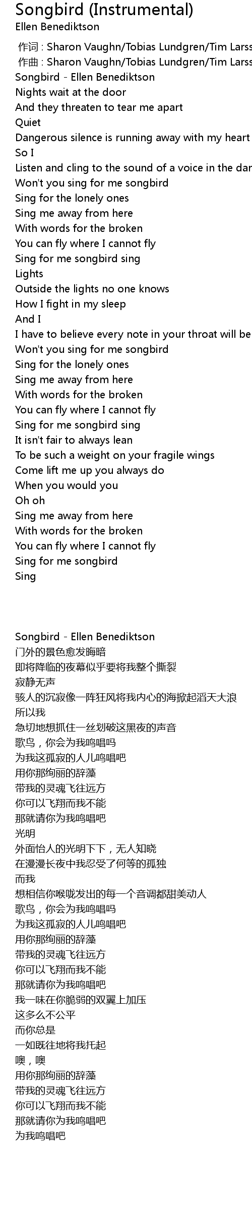 | [00:00.23] | Songbird - Ellen Benediktson |