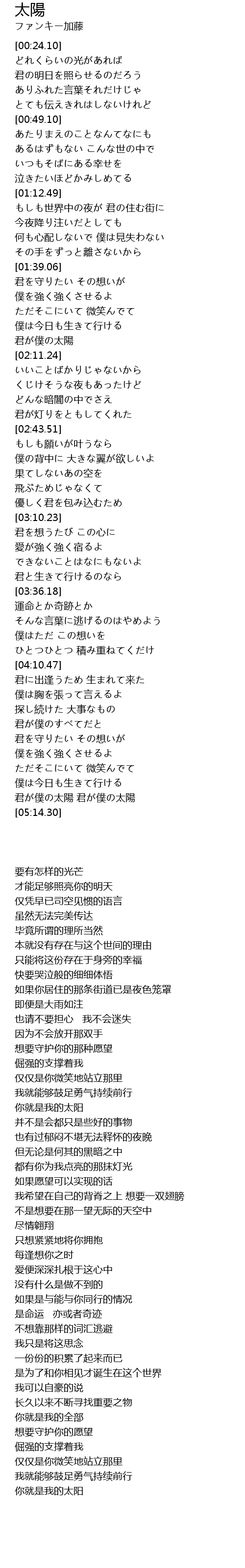 | [05:00.68] | 君が僕の太陽 君が僕の太陽 |