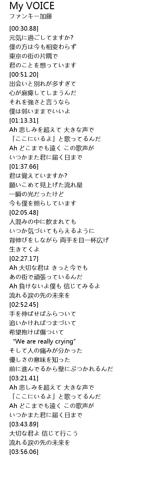 | [03:22.12] | Ah 悲しみを超えて 大きな声で |