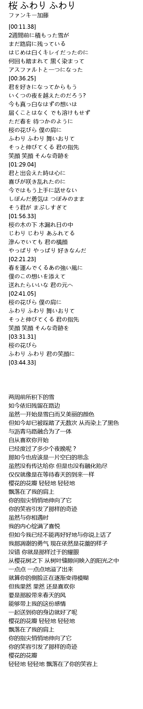 | [03:04.31] | 桜の花びら 僕の肩に |