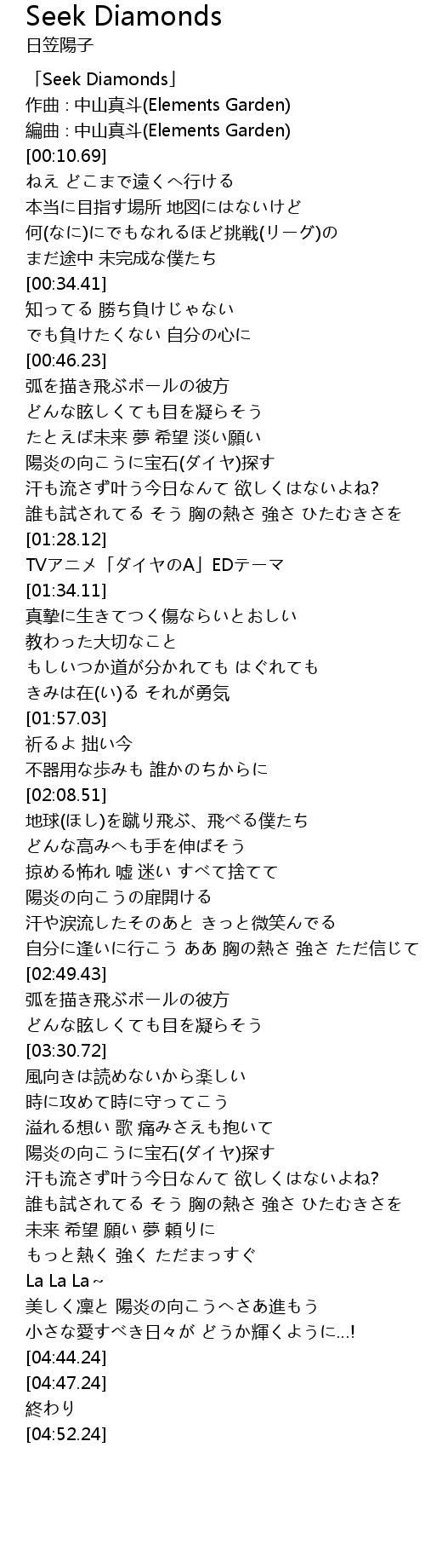 | [00:00.69] | 「Seek Diamonds」 |