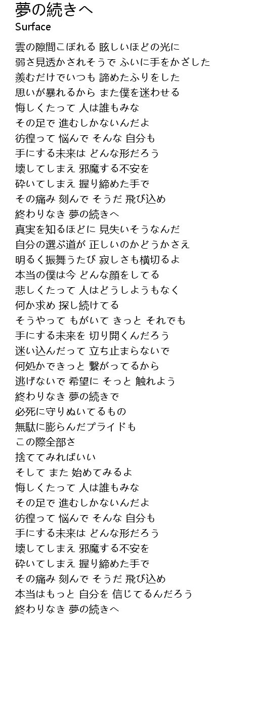 終わりなき 夢の続きへ |