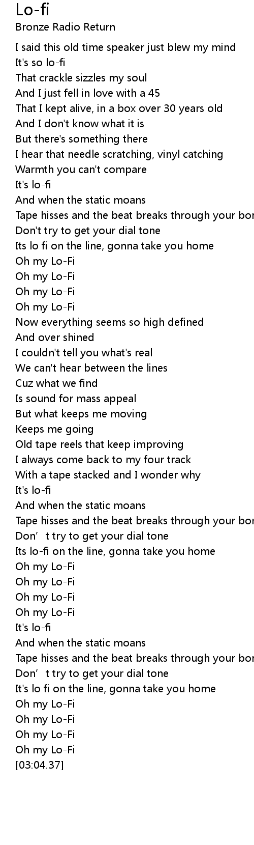 | [01:07.00] | Its lo fi on the line, gonna take you home |