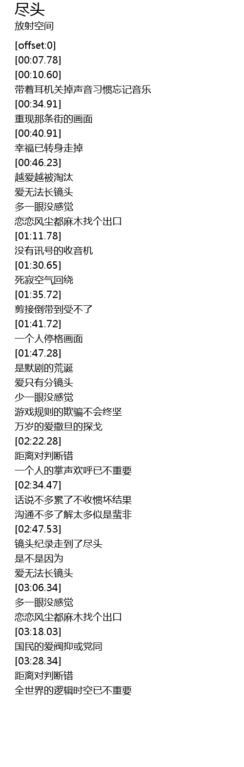 | [02:48.03] | 镜头纪录走到了尽头 |